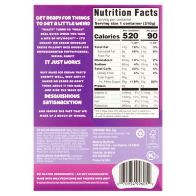 Up to 5 cash back MyMo Mochi Ice Cream Double Chocolate - 6 ct 91 oz box Quick Facts Gluten-free Kosher Nutrition 630 Calories 13g Sat Fat 115mg Sodium 81g Sugars Nutrition. May contain peanuts and tree nuts.